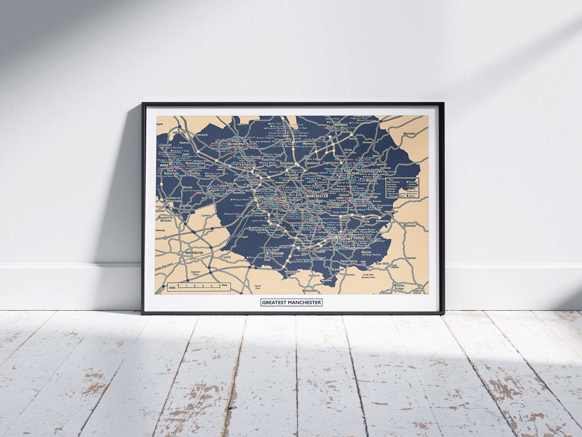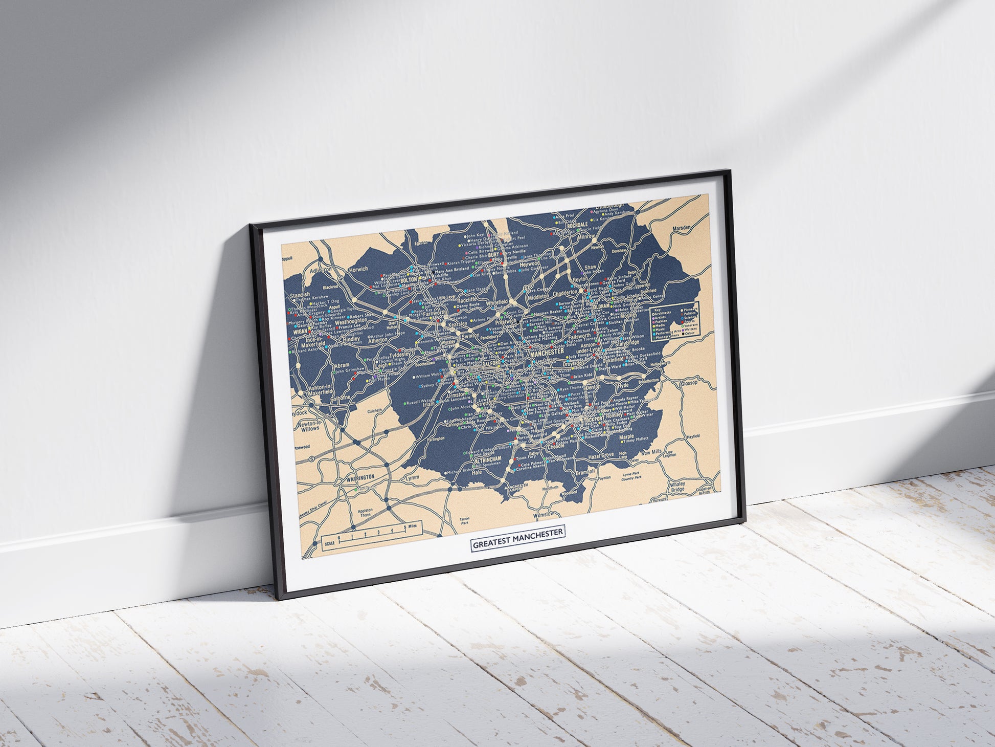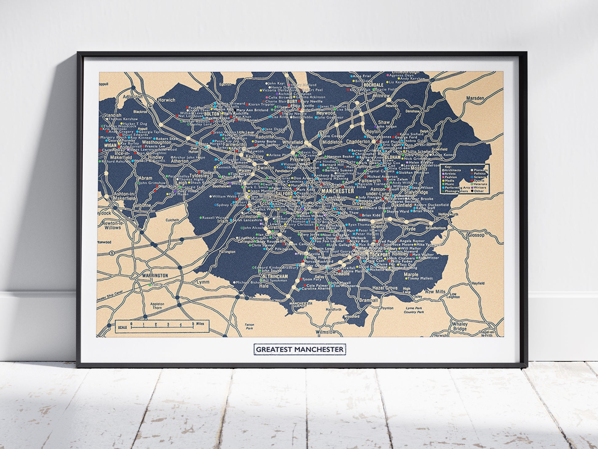 Experience the inspiring vibrant tapestry of talent that is Greater Manchester with this unique 'Greatest Manchester' blueprint design. An extraordinary collection of over 250 notable individuals from this dynamic region.