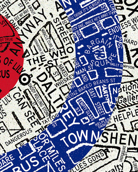 The Who's “The Seeker” Map blasts through 1960s central London – the exact streets where Pete, Roger, John and Keith first gigged, crashed and carved their legend – with roads and landmarks swapped for Who songs, lyrics and the mod gang.